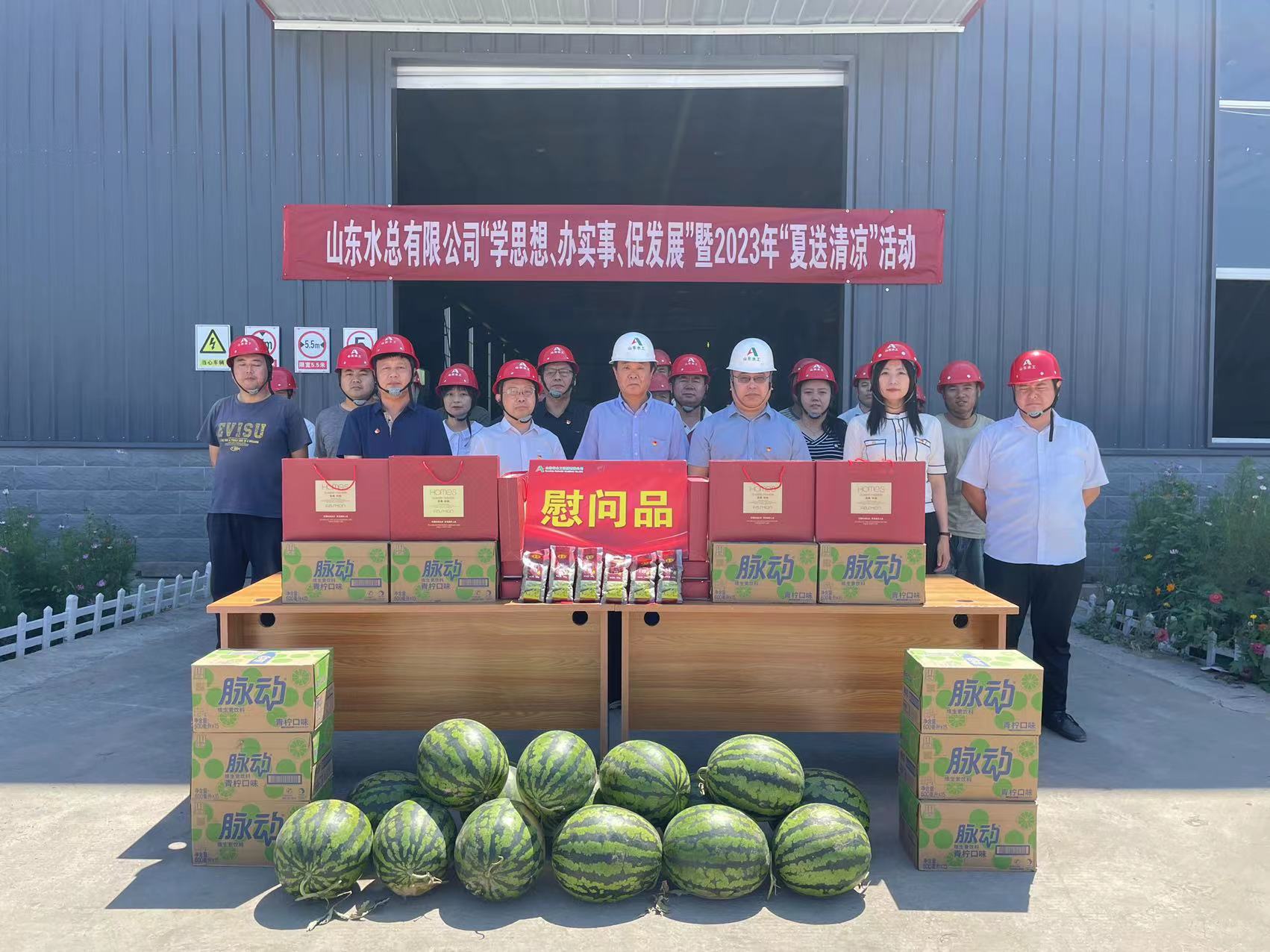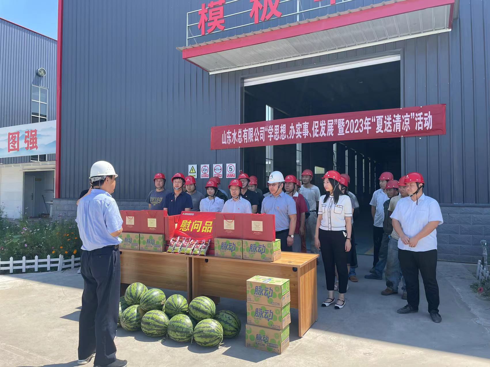 为推进学习贯彻习近平新时代中国特色社会主义思想主题教育走深走实,持续为职工群众办实事,传递公司党委、工会对一线职工的关心关爱,7月18日,山东水总党委委员、纪委书记朱瑞伟一行到水工机械公司开展“学思想、办实事、促发展”暨2023年“夏送清凉”慰问活动。
