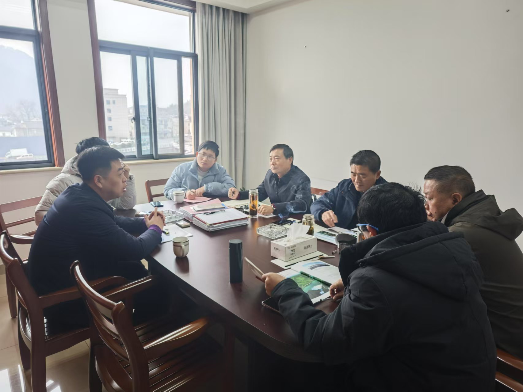 张冬春一行来到双溪口水库大坝现场,了解双溪口水库的整体布局、工程建设进程等情况。在座谈会上,杭州鲁润公司就山东水总的基本信息、双溪口水库的工程概况、建设历程、运行管理等方面作介绍。张冬春指出,建设双溪口水库的成功经验对于歙县水利项目建设具有重要的学习借鉴价值,希望双方就加强合作、党建联建互动等方面进一步深入交流。